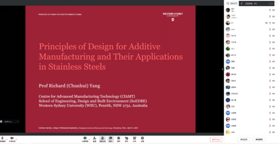 4月19日下午,澳大利亚西悉尼大学杨春晖教授应邀为公司师生作题为《3D金属打印与增材制造》的线上学术讲座。会议由K1体育经理杜力主持,副经理李平及60余名研究生参加。