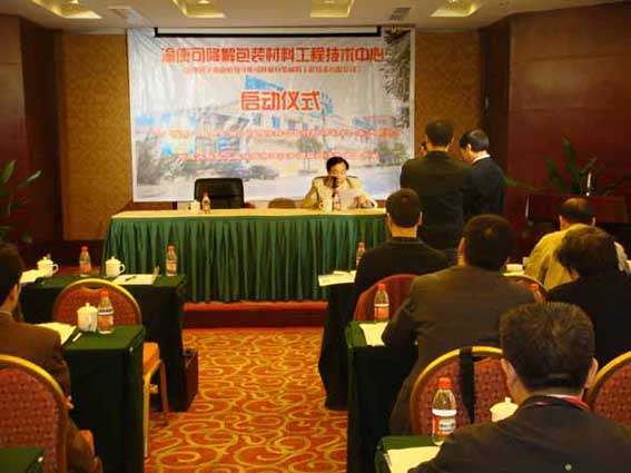 在贵州省、遵义市各级政府部门的推动下,由公司与遵义市大康绿色产品有限公司联合组建的“贵州遵义渝康可降解包装材料工程技术中心”,于2008年10月26日上午,在遵义大世界酒店举行了隆重的启动仪式。