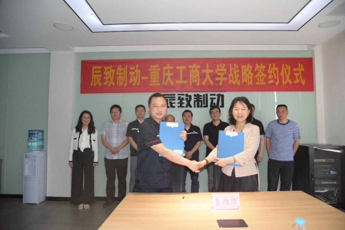 辰致制动系统有限公司专业从事汽车制动系统的研发、销售与生产,年产值20亿元以上,年产制动器400余万套。毛强副总经理在交流会上致欢迎词并介绍了该公司的发展历程和校企合作意向领域。杜力经理就公司发展历史、本科专业建设、硕士人才培养等方面做简要介绍。双方就建立长期战略合作伙伴关系达成共识,在辰致制动四楼第二会议室举行了战略合作签约仪式。随后,公司一行人参观了企业的零部件、产品生产线和试验室,并就本科生/研究生实习实训、本科生/研究生就业、科研项目联合攻关等具体事项开展交流。