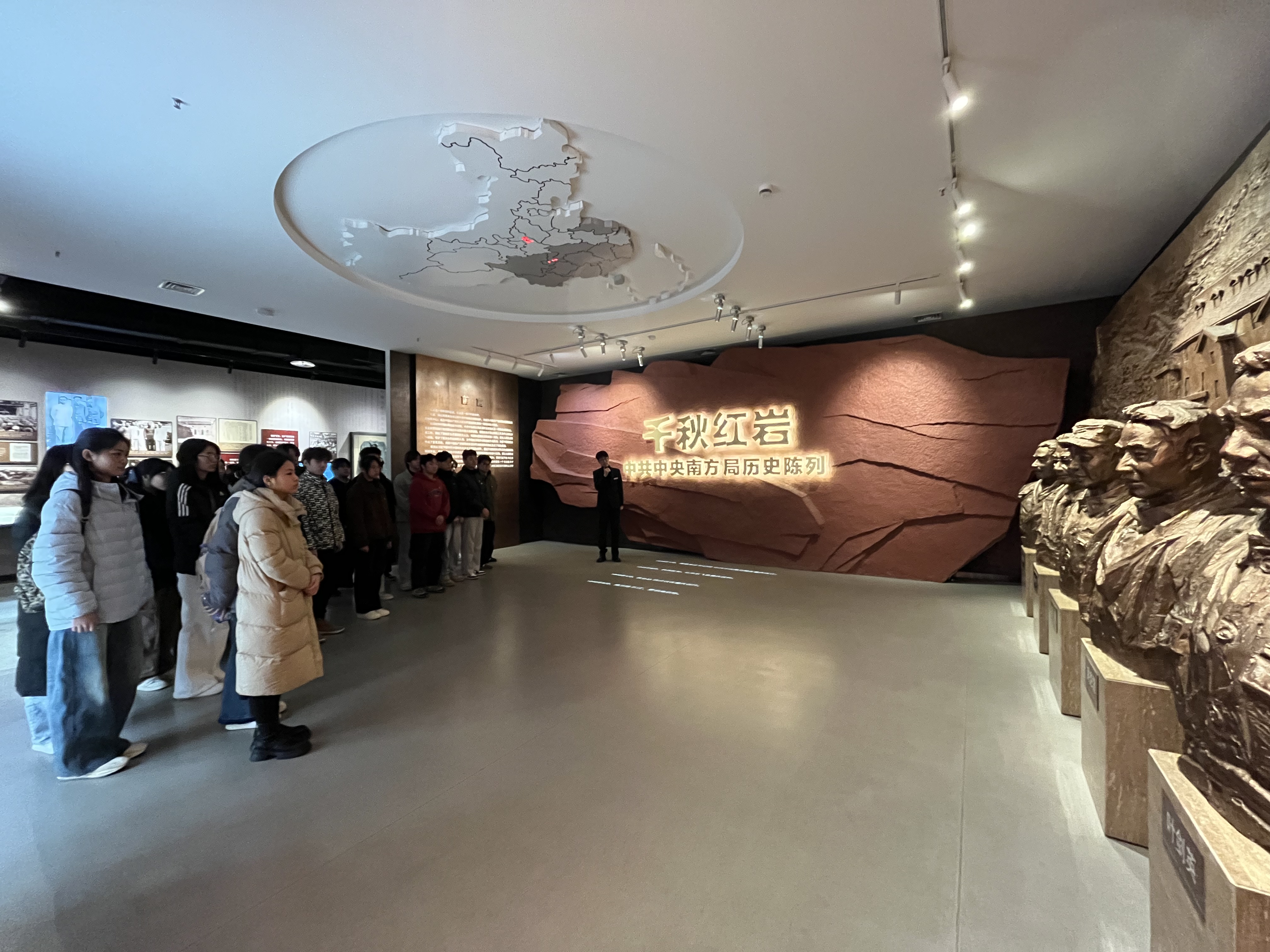 在纪念馆内,同学们在讲解员的引导下,沿着历史的脉络,依次进行参观学习。从抗日民族统一战线形成、国民政府迁都重庆的序篇,到中共中央南方局结庐红岩、八路军办事处在重庆建立的艰苦岁月;从见证舆论战斗的《新华日报》印刷机真品,到坚持团结抗战,维护合作大局、团结各界人士,发展壮大民主力量的生动实践;从荟萃文化群英,推动抗战进步文化的蓬勃景象,到开辟秘密战场、争取国际广泛支持的隐蔽战线与外交努力;最后经由重庆谈判、争取和平民主的篇章,直至“红岩精神,光耀千秋”的宏大总结。一幅幅珍贵的历史图片、一件件厚重的革命文物、一段段感人至深的英雄事迹,生动再现了中共中央南方局老一辈无产阶级革命家、共产党人和革命志士,在艰苦卓绝的环境中培育形成的崇高红岩精神——救亡图存的爱国精神、不畏艰险的奋斗精神、和衷共济的团结精神、勇于牺牲的奉献精神。同学们驻足凝视,认真倾听,深刻感悟党的光辉历程与奋斗艰辛,在思想上接受了一次深刻的洗礼。