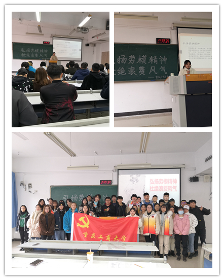 本次活动以“弘扬劳模精神,杜绝浪费风气”为主题,向同学们大力推崇劳动和节约的光荣之风。活动开始,党员服务站副站长何江霞和副站长刘莹就关于农业生产流程、提倡劳动杜绝浪费的相关政策依次发言。何江霞为同学们详细介绍了现代农业生产的含义,农业结构,区域布局,发展问题以及农业生产类型,同时还为同学们介绍了世界粮食日的相关内容,以及我国目前的粮食浪费现状。她强调,粮食来之不易,我们一定要节约粮食。刘莹则为同学们陈述了劳模精神的内涵,同时介绍了陶遵建等全国劳动模范以及丁勇兵等平民模范。希望同学们能以模范为榜样,以劳动为荣,多参与劳动来丰富我们的校园生活,同时让生活变得更加有意义。紧接着,党员服务站宣传部龙欣和组织部况晓丽分别就此主题发表演讲。两位同学都从劳动与节约为出发点,倡导劳动光荣。同时提倡坚决杜绝餐饮浪费和生活懒惰,促进员工身心健康。在之后的识图游戏和知识问答环节上,同学们踊跃参与,现场气氛活跃。