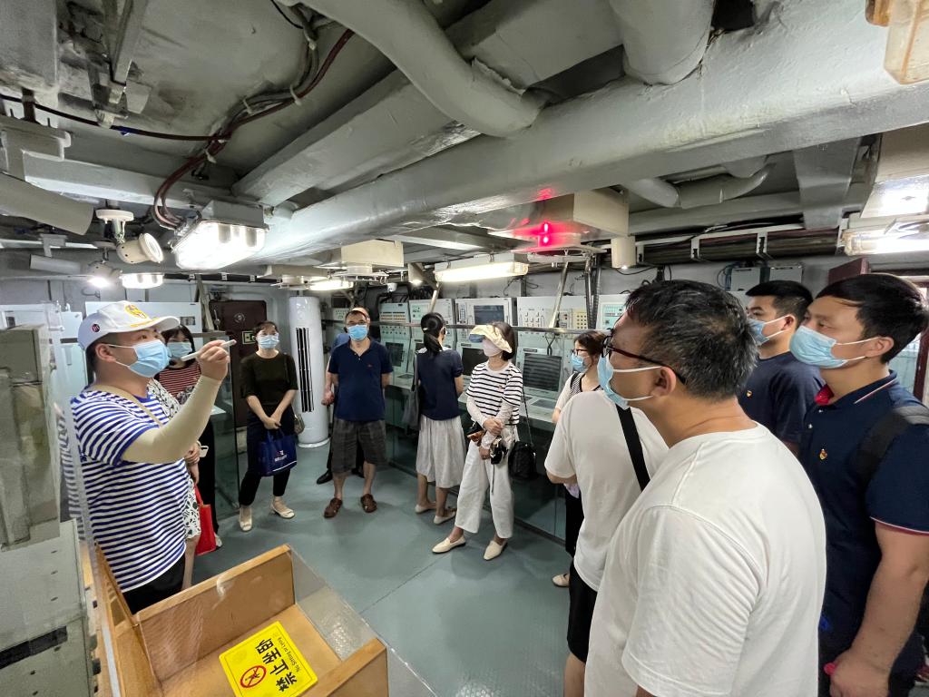随后,全体党员集体乘车前往建川海疆博物馆现地践学,参观了原人民海军166舰和海疆博物馆。登上军舰,大家依次参观了舰上各舱室,通过讲解员介绍和实地感受,了解了原舰上官兵生活的艰苦,感悟了原舰上官兵的革命精神和乐观态度。参观博物馆,大家学习了解人民海军的发展史,被一代代海军人的爱国情怀、为国防事业发展不断拼搏精神所感染,纷纷表示,一定要将学习到的精神内化到工作中,不需扬鞭自奋蹄,以优异的成绩迎接党的二十大召开。支部还邀请了学院部分民主党派人士代表和群众代表参加本次活动。