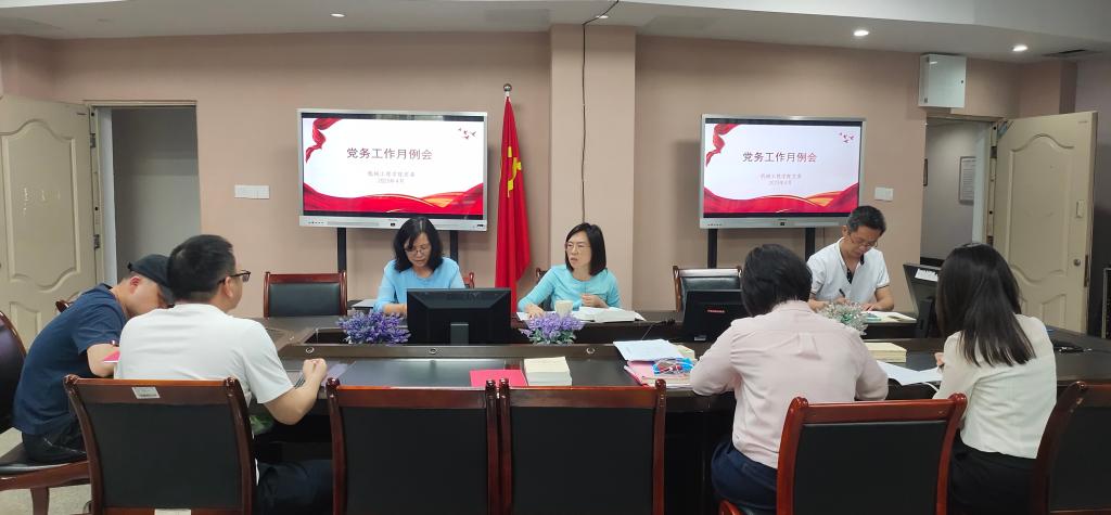 4月21日上午,K1体育党委在90708会议室召开党务工作月例会。本次会议由党委书记杨娟主持,党委副书记、正处级组织员、党支部书记共同参加了会议。
