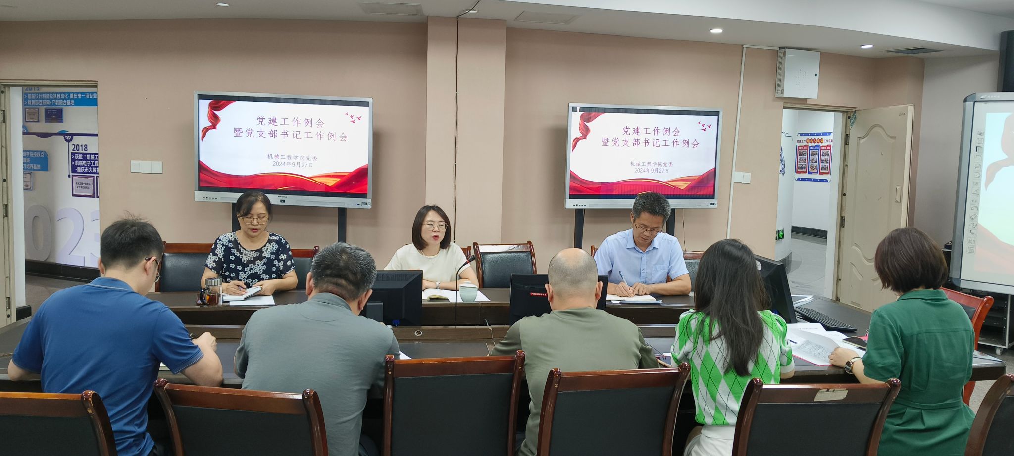会上,党委书记杨娟同志领学党的二十届三中全会精神。党委副书记陈春洁领学全国教育大会精神。专职组织员张晓琴通报本学期发展党员摸底统计情况并强调了2024级新生党组织关系和党员档案接收工作。党建联络员邢月军讲解党建督察相关工作要求。之后,各党支部书记交流近期工作。