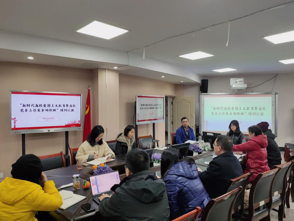 为加强新一届党务干部的理论学习,提升党务干部的业务水平,积极有效地开展爱国主义教育,顺利推动基层党建重点工作的开展,公司党委于2020年12月25日至28日,派送公司相关党务干部5人参加了“新时代高校爱国主义教育暨高公司党务工作实务研修班”培训。1月5日上午,公司党委在公司会议室召开了新时代高校爱国主义教育暨高公司党务工作实务研修班培训心得分享会,会议由公司党委杜力书记主持,公司党委委员、各党支部书记、委员共同参加了会议。会上,参加本次培训的5位党务干部分别做了培训心得汇报分享。