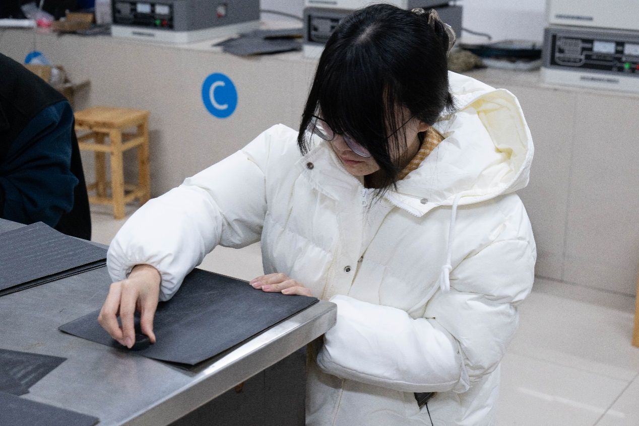 此次比赛采用分组制,比赛中,选手们使用从低目到高目的砂纸对所给工件进行打磨,直至表面痕迹方向一致。这一过程不仅是对选手们耐心的考验,更是对“慎思谨作”精神的体现。赛场上,选手们精神高度集中,一丝不苟地进行操作,为获得理想的成绩而努力。