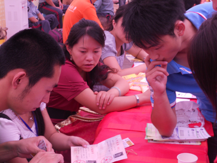 为了给广大新生送去最便捷的服务,公司百名志愿者早早来到“第一战线”――广场大本营为迎接新生的到来做好充分的准备。虽说今日骄阳挂空,但还是有淡淡的秋风送进清凉,吹散着志愿者们军训后的疲惫。志愿者们按照原计划有步骤、有条理的安排每一项工作。他们积极解答新生及家长的各种疑问,并为他们指引道路,帮忙搬运行李,介绍公司概况,让他们能安心、愉快、快速的融入老员工活。