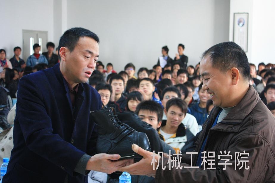 K1体育团总支员工会通过重庆电视台“天天630”节目得知一位足部残疾的彭先生四十几年都没有一双真正的鞋子的时候,主动联系重庆电视台,经过多方寻找和协商终于感动了重庆双菱皮鞋厂,为彭先生制作了一双属于他自己的鞋。11月23日中午12:30,在公司兰花湖校区20307教室,彭先生终于收到了这份特别的礼物,并用自己所见所感为在座的所有人上了一堂生动的思想教育课。活动现场,不仅有感人的话语,动人的故事;更多的是我们看到了残疾人那种自强不息,向美好的生活迈进的坚定信念和社会对于残疾人这类弱势群体的关爱之情。K1体育团总支书记刘静老师指出要同学们将这种关爱之心延续下去;重庆双菱集团的杨总也提到:没有打不倒的困难,只要我们有毅力,有决心!重庆电视台“天天630”节目也对此次活动进行了全程报道。
