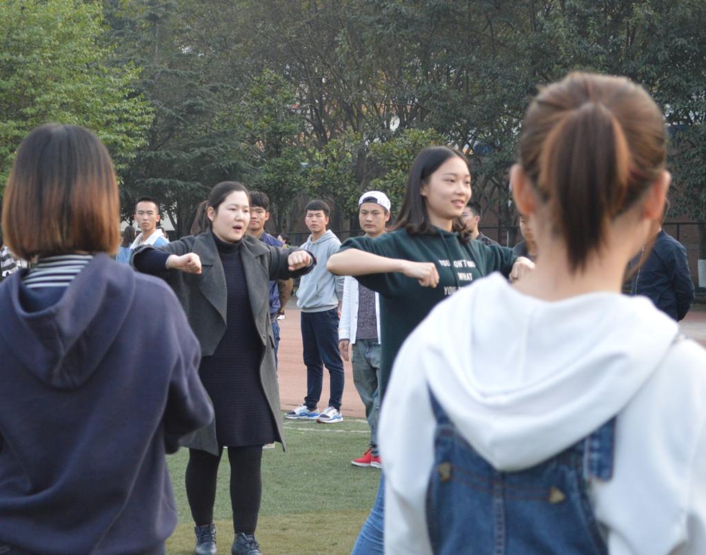 同学们严肃认真的对待此次训练,达到了此次训练的目的——团结协作,争创一流。在邢老师指导下,带队同学对参训同学们进行了统一的动作训练,以小组为单位,一个动作一个动作的分解,让组长来进一步纠正错误,讲解详细动作。一次又一次的练习,让动作越来越标准。而每一次举臂踢腿,每一次转身蹲下,同学们都十分认真,动作慢慢开始变得整齐。最后的一次演练,方阵从整队到解散表现为“快、静、齐”,不仅让同学们明白了此次训练的意义所在,而且也展现了机械学子认真努力的精神面貌。
