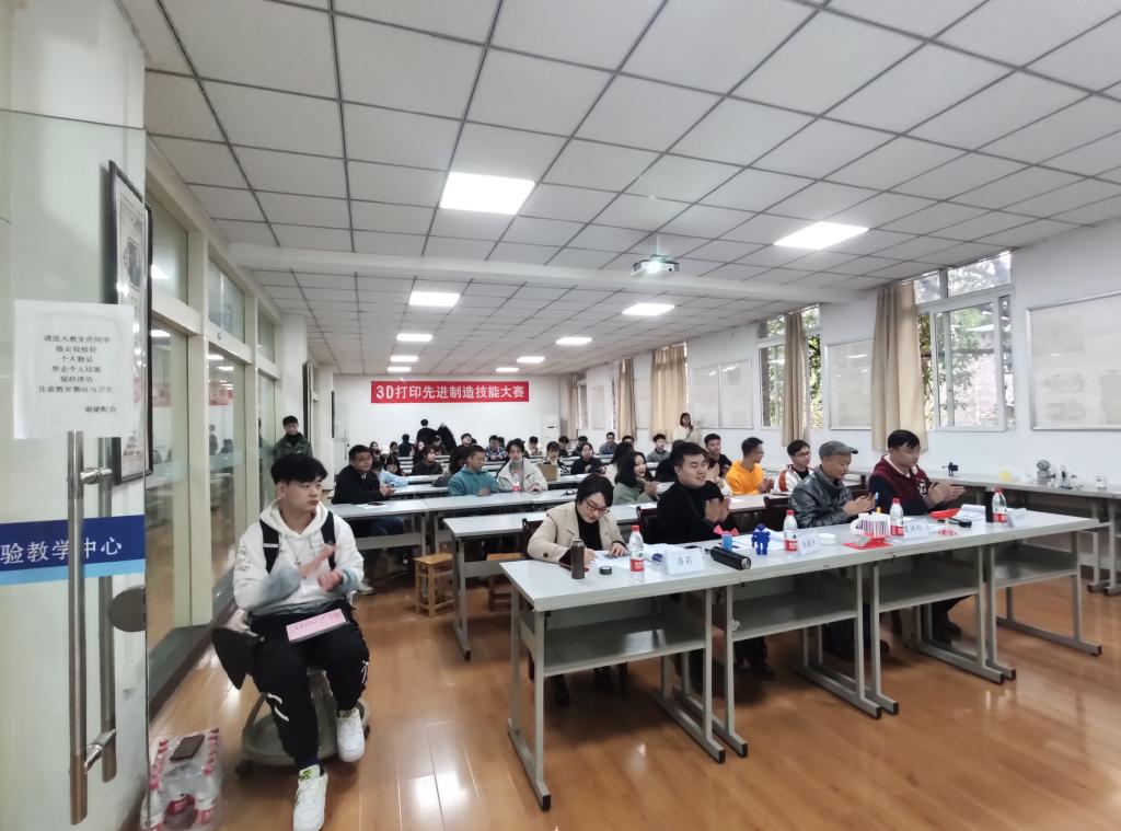 最后,大赛在当天下午13:40结束,此次大赛每组的作品都有自己的特点,选手之间也都得到了相互的学习。这次大赛不仅让观赛者更加了解3D打印,也让同学们对3D打印有了更加深入的认识。
