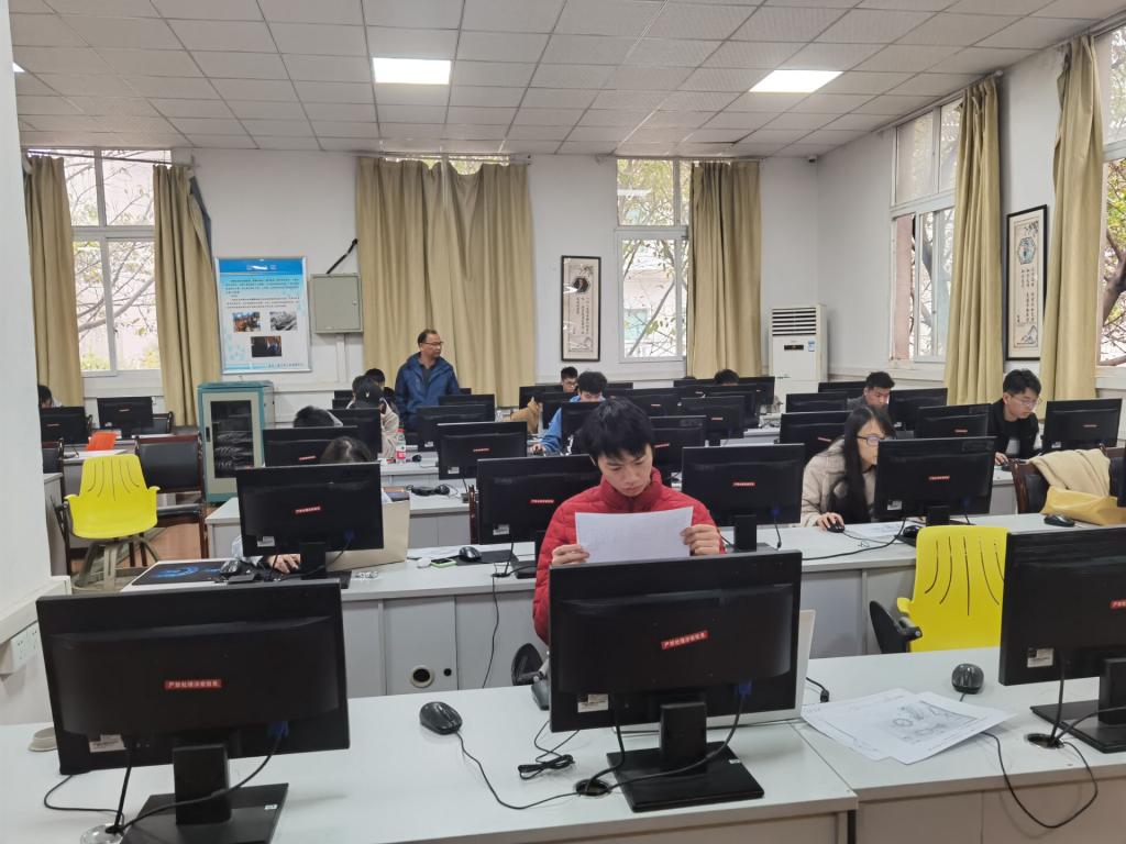 11月21日进行的是大一组比赛。大一组的比赛分为尺规绘图和CAD成图,共有179位同学参加。当天上午9:30到10:30,11:00到12:00两个时间段在K1体育官方网站兰花胡片区广智楼20706、20707、20708三间教室进行了尺规绘图。下午13:30,在K1体育官方网站南岸校区工程训练中心三楼的机房和绘图教室进行了CAD成图,最后大一组的比赛在下午14:30正式结束。