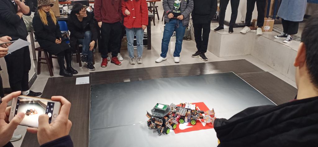 比赛前,每支队伍的代表人上台对该组设计的智能机器人进行简单的介绍及想法分享。在各支队伍答辩展示完成后,裁判简单宣读规则,由评委王洪建老师等多位裁判给每场比赛评分,科技协会的干事计时、拍照记录赛场。在各个参赛队伍的创意下,各式各样张牙舞爪的机器“怪兽”上场厮杀,现场激烈,精彩的对垒引发观众们一阵阵热烈的掌声。经过激烈的小组循环赛,最终评出本次比赛的获奖队伍。比赛在王洪建老师和各位裁判及各位科技协会干事的努力下圆满结束。这次比赛激发了同学们对智能机器人的兴趣,并为明年的机器人创意大赛培养了种子队伍,相信参与了本次的比赛的同学都觉得不虚此行。