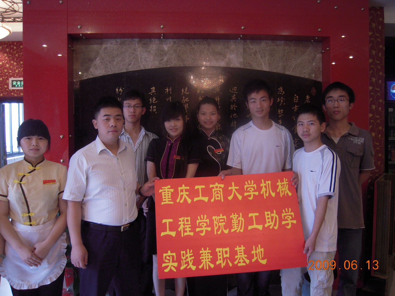 为了给同学们提供更多的实践兼职机会,K1体育勤工助学中心不断开拓新的道路。经过积极的联系和沟通,2009年6月13日上午,我中心与渔洞老四川大酒楼举行了隆重的挂牌仪式,这标志着公司勤工助学中心自谋的第一个实践兼职基地正式成立。