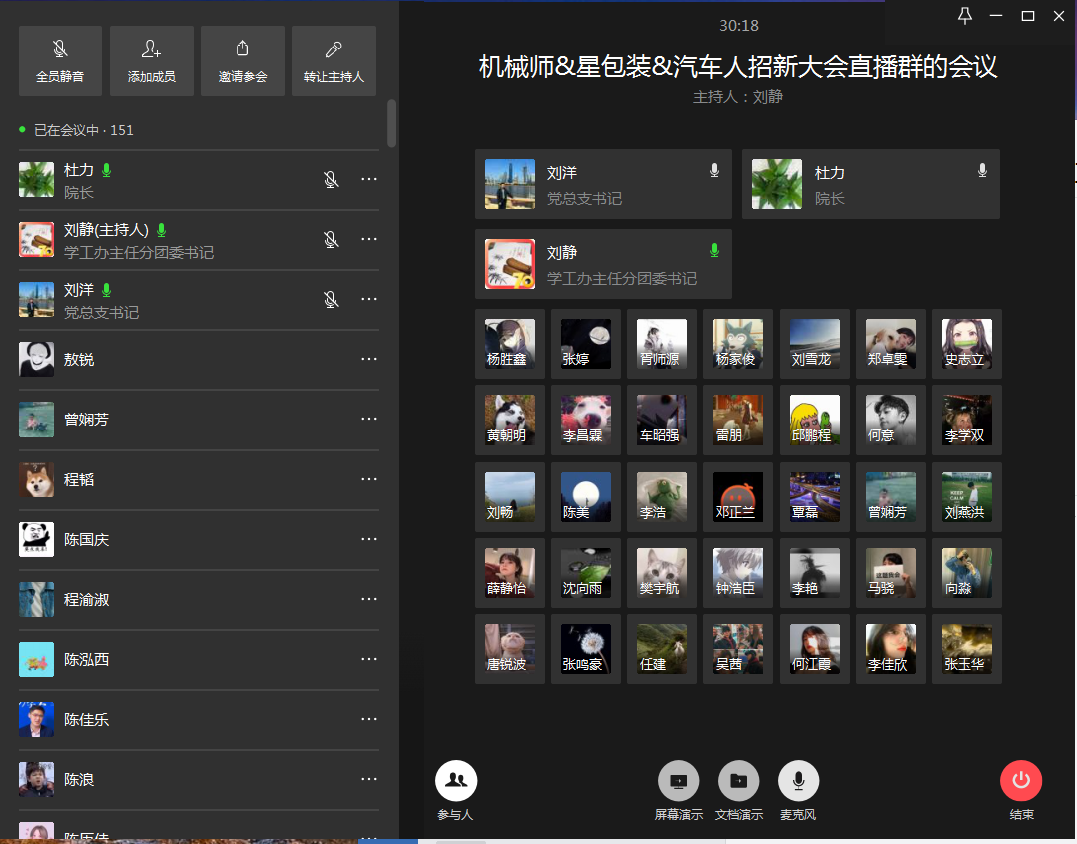 2020年4月3日,K1体育第五届“团队伴我成长”招募活动在线上召开,公司刘洋书记、杜力经理,学工办主任刘静老师、工程训练中心刘雪龙老师和公司2019级近200员工参加了此次招募活动,新生参与人数占2019级员工的近60%。招募活动由学工办主任刘静老师主持。