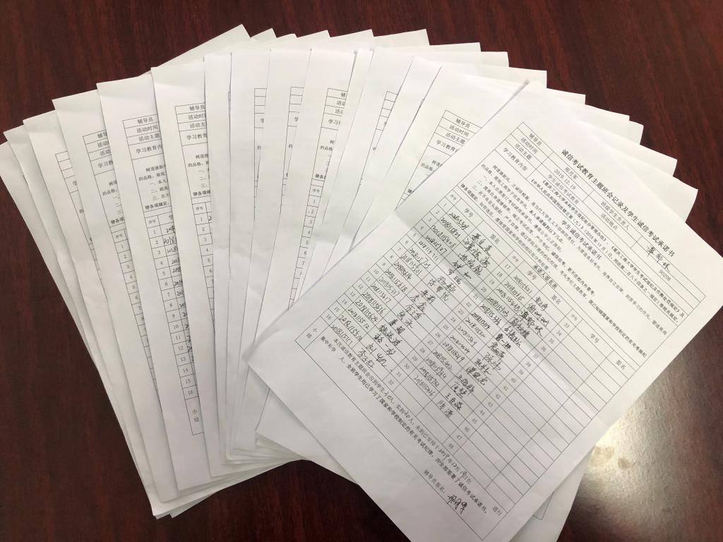 2019年12月上旬,K1体育2016-2019年级开展了诚信考试主题班会教育活动,各班辅导员通过主题班会形式组织全体员工在考试周开始前学习相关的文件规定。学习内容包括《国家教育考试违规处理办法》、《K1体育官方网站本科员工违纪处分管理办法》、《K1体育官方网站员工考试违纪及作弊处罚规定》及《中华人民共和国刑法修正案(九)》(2015年11月1日,刑法第二百八十四条之一规定)等相关规定。在完成主题学习之后,各班员工签订了《员工诚信考试承诺书》,承诺考试遵循公平公正原则,端正考试态度,严守考纪,诚信应考,更不在校内外替考,在不良念头面前,严于自律。