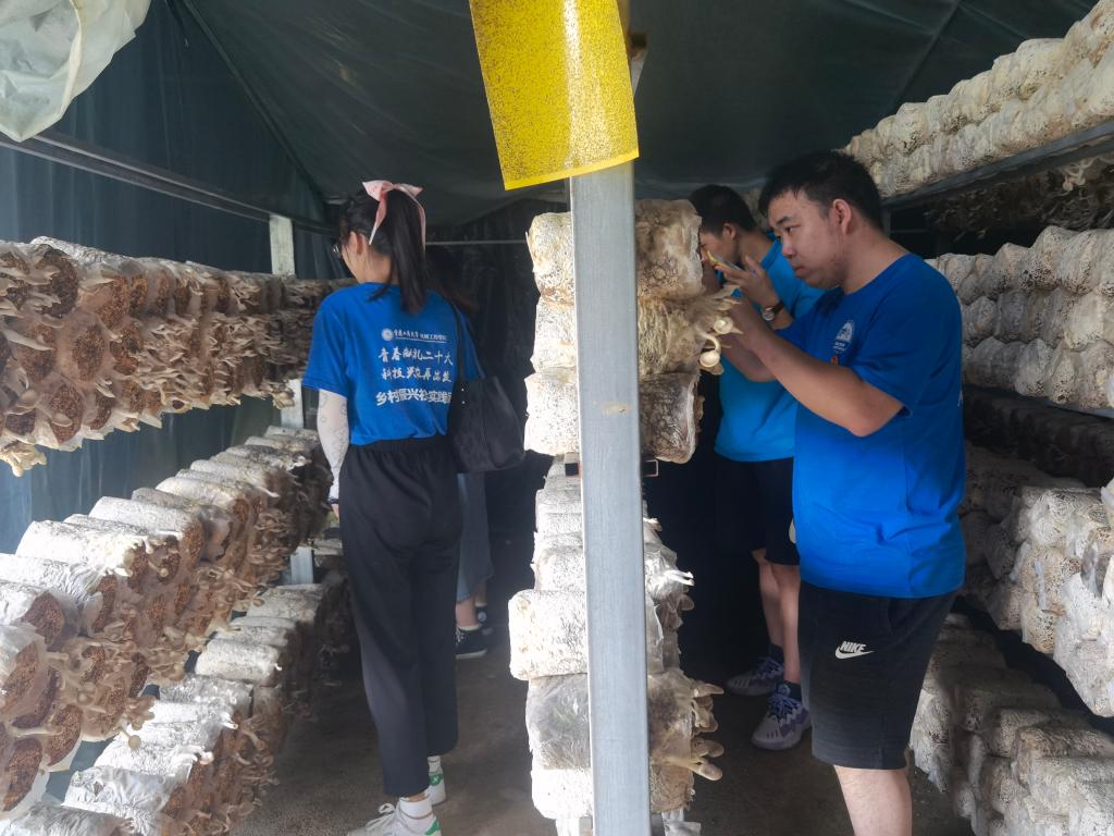 为贯彻落实习近平总书记关于乡村振兴的重要思想,鼓励老员工把专业理论知识同社会实践相结合,2022年7月12日,K1体育“青春献礼二十大,科技兴农再出发”乡村振兴社会实践团在石堰镇经发办主任蒋夕奎主任的带领下,走进了干坝村蘑菇种植基地走访调研。