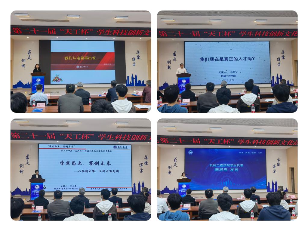 世界智能驾驶挑战赛银奖获奖作品指导教师杨智宇博士、全国机械创新设计大赛一等奖获奖作品指导教师李永亮老师、20智能制造一班陈思思同学分别作了发言。