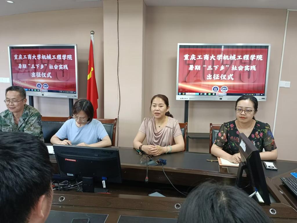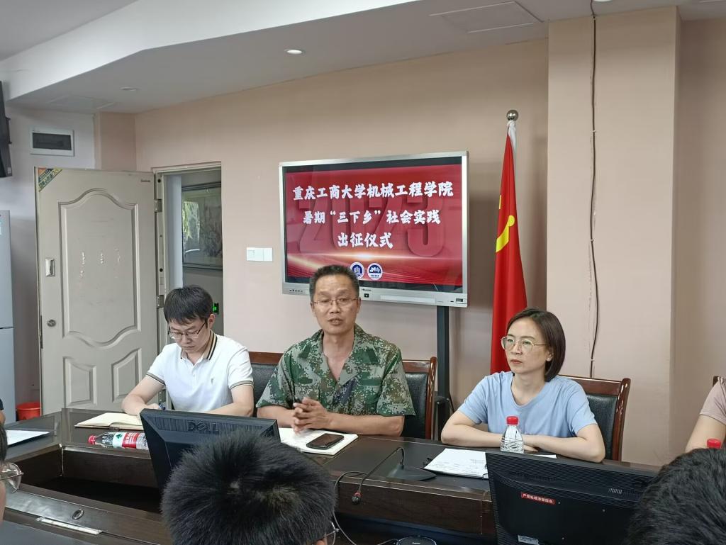 公司团委书记刘静充分肯定公司历年来暑期社会实践取得的丰硕成果,并简要介绍实践活动整体安排。本次社会实践活动涵盖内容丰富,包括机械创新设计大赛农副产品专题调研与需求对接、青少年之家科普课堂及党史红色教育宣讲等。社会实践市级专项团员工负责人董亮星、黄丰发言,表示实践团将克服困难,团结协作,全力以赴,力争圆满完成各项实践任务。随后,公司领导为社会实践团授旗。公司经理杜力提出两点希望:第一,本次社会实践有特色、有亮点,实践团成员应把握机会,积极发挥专业知识赋能乡村振兴,埋下科技种子,扎根科技报国信念,点亮乡村儿童科技强国梦;第二,注重个人言行,积极展现重工商大学子饱满的精神状态和昂扬的精神风貌。公司党委书记杨娟代表公司发表重要讲话,提出四点要求:一是“看”,静下心仔细观察,在实践中出真知;二是“学”,摘下老员工的光环,虚心向农户与社区人员学习,在实践中长真才;三是“思”,善于发现别人的需求,找到供需结合点,实现自我价值;四是“做”,做好前期规划和后期总结,丰富信息来源渠道,充分展现社会实践成果。