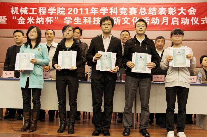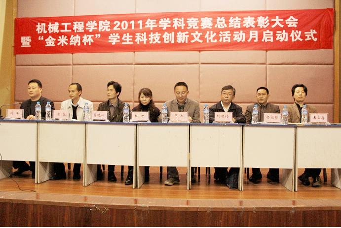 员工处华杰处长,教务处曾晓松副处长对机械公司在2011年员工学科竞赛中取得的成绩给予了充分肯定,对今后的工作提出了要求和希望,“今年花开红胜火,明年火红胜今年”,华杰处长的寄语得到了全场热烈的掌声。最后,党总支杨明伦书记为此次大会做了总结,他对获奖同学表示了祝贺,对职能部门和重庆市金米纳机电技术有限公司刘昌友员工对员工科技活动的大力支持表示了衷心的感谢,希望机械学子认真学习,积累知识,积极参加科技活动,培养实践能力和创新精神。