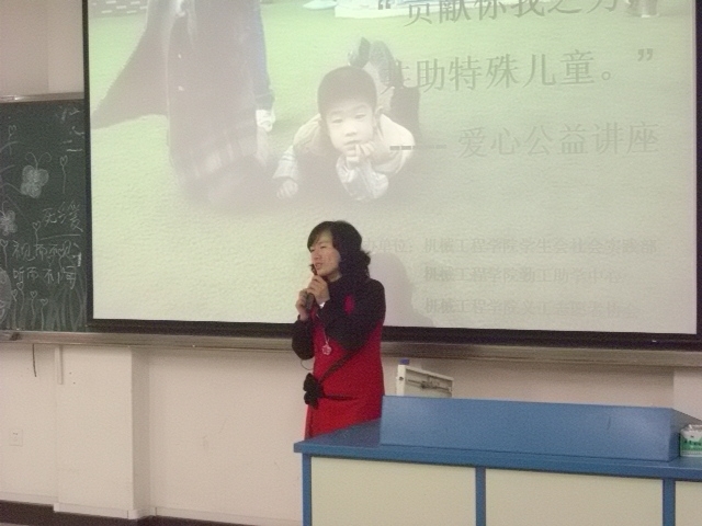 贺小燕女士,一个将爱播洒人间的人,在乐一融合幼儿园,智障儿童得到关爱,心灵得到健康成长。讲座上,她将自己与智障儿童相处的亲身经历与大家交流、分享,给大家心灵很大触动。她也以自己的亲身体会期望大家在老员工活应该学会感恩,学会坚强独立的生活。同时也告诫在校老员工不要因为碌碌无为而青春时光一晃而逝,不要因为迷茫而蹉跎岁月。