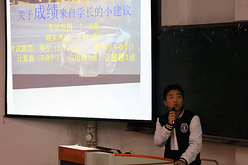 随着主持人致开幕词,此次期末交流会正式拉开帷幕。首先,由辅导员郑娴老师上台讲话,随着老师的讲话,同学们也慢慢的进入了状态。为了提高新生们的学习效率,本次活动邀请了2014级学长牟泽军、裴文远,2013级学长兰冬冬、王剑宇,介绍他们的学习经验和学习方法,分别从高等数学、英语、工程图学、专业课方面给大家讲述他们的学习心得,期间的提问环节更是帮助新生解决了部分学习方面困惑。最后由2015级导航学长张雪琴、曾成平、李丹丹分别给本次交流会做总结,并表达美好祝愿。