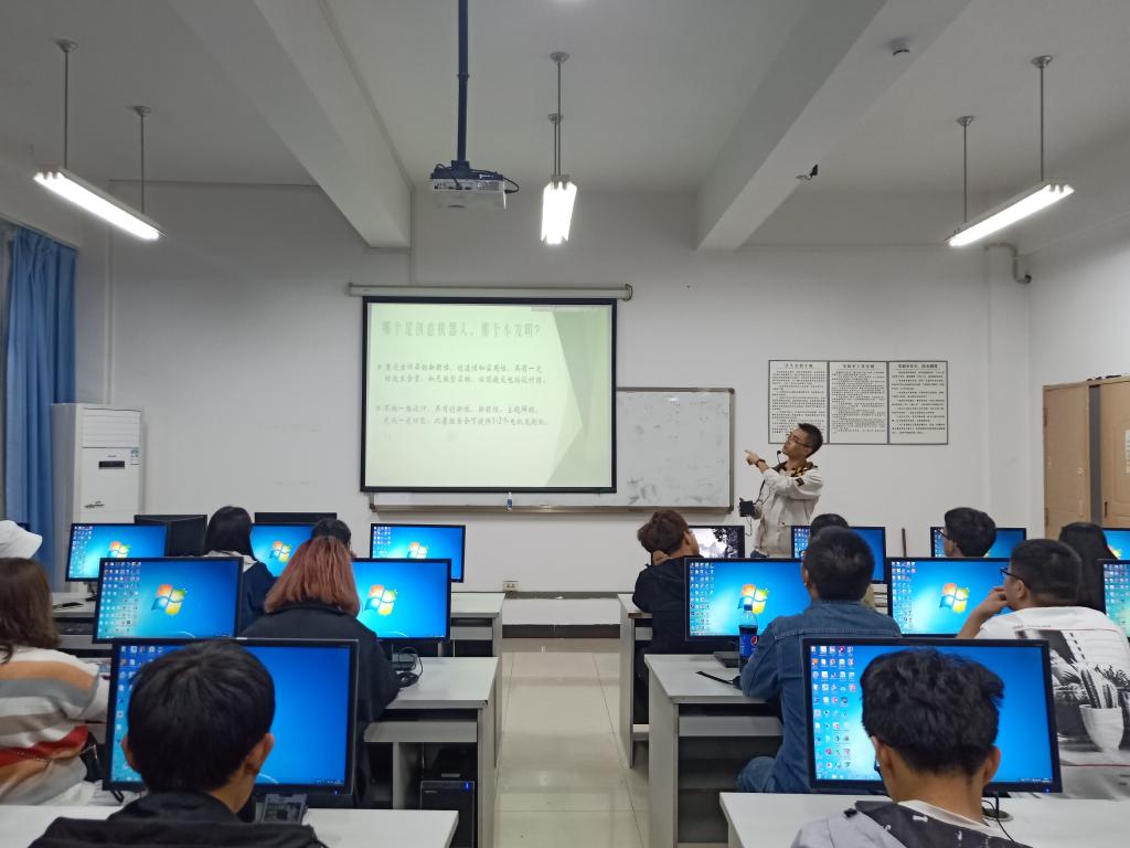 2019年10月17日晚,K1体育在10209教室开展了机器人比赛宣讲会,主讲为机电系主任王洪建老师,上届获奖员工代表胡崇尔、蒋仕刚和郑仝也在会上进行了经验分享。