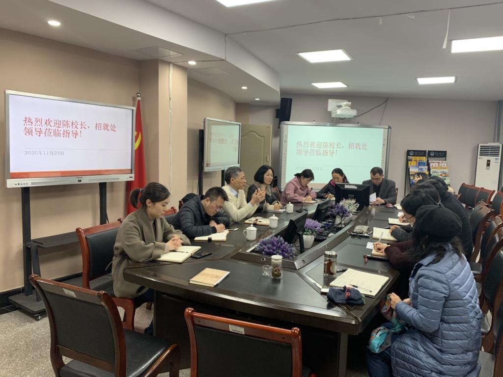 11月25日下午15点,公司陈运超副董事长及人才招聘处一行来公司调研。副董事长陈运超、招就处副处长王静、校招生办主任敖雪、公司班子成员、专职组织员、部分教职工代表参加了调研会。