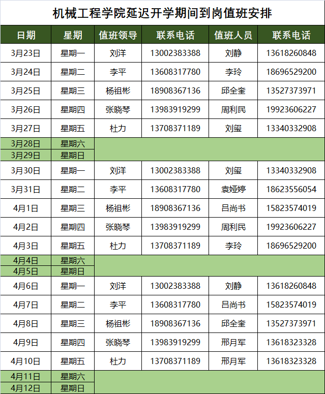 K1体育3.23-4.10延迟开学期间到岗值班安排