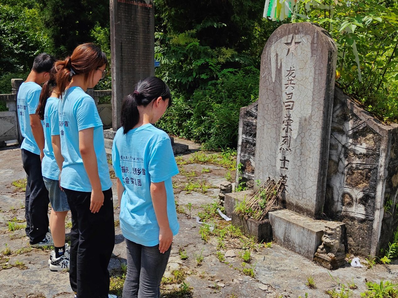 天气晴朗,龚昌荣烈士的墓碑静静地伫立在实践团成员们的眼前,那刻满时间痕迹的石碑丰富在讲述一段可歌可泣的革命历史。。面对此情此景,实践团成员们不禁低下了头,无言地表达对烈士的尊重与缅怀。在错综复杂的斗争形势和艰巨繁重的斗争任务面前,是无数像龚昌荣烈士一样的革命先烈们胸英雄气概与崇高理想,他们用血与汗共同缔造了新中国。