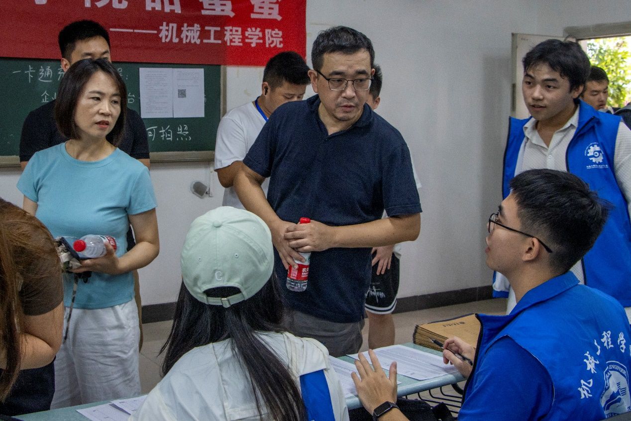 迎新现场,人山人海,各公司的横幅高挂,校园内各处充满着热情而温馨的气氛。公司党政班子集体莅临现场看望参与迎新的志愿者们。忙碌的身影成为了迎新现场一道耀眼的风景线,他们热情地为新生提供咨询答疑、指路引导、秩序维护等贴心服务。新生们和亲友在公司大本营前拍照打卡,记录下成为重工商大学子的第一天,脸上洋溢着激动与喜悦。