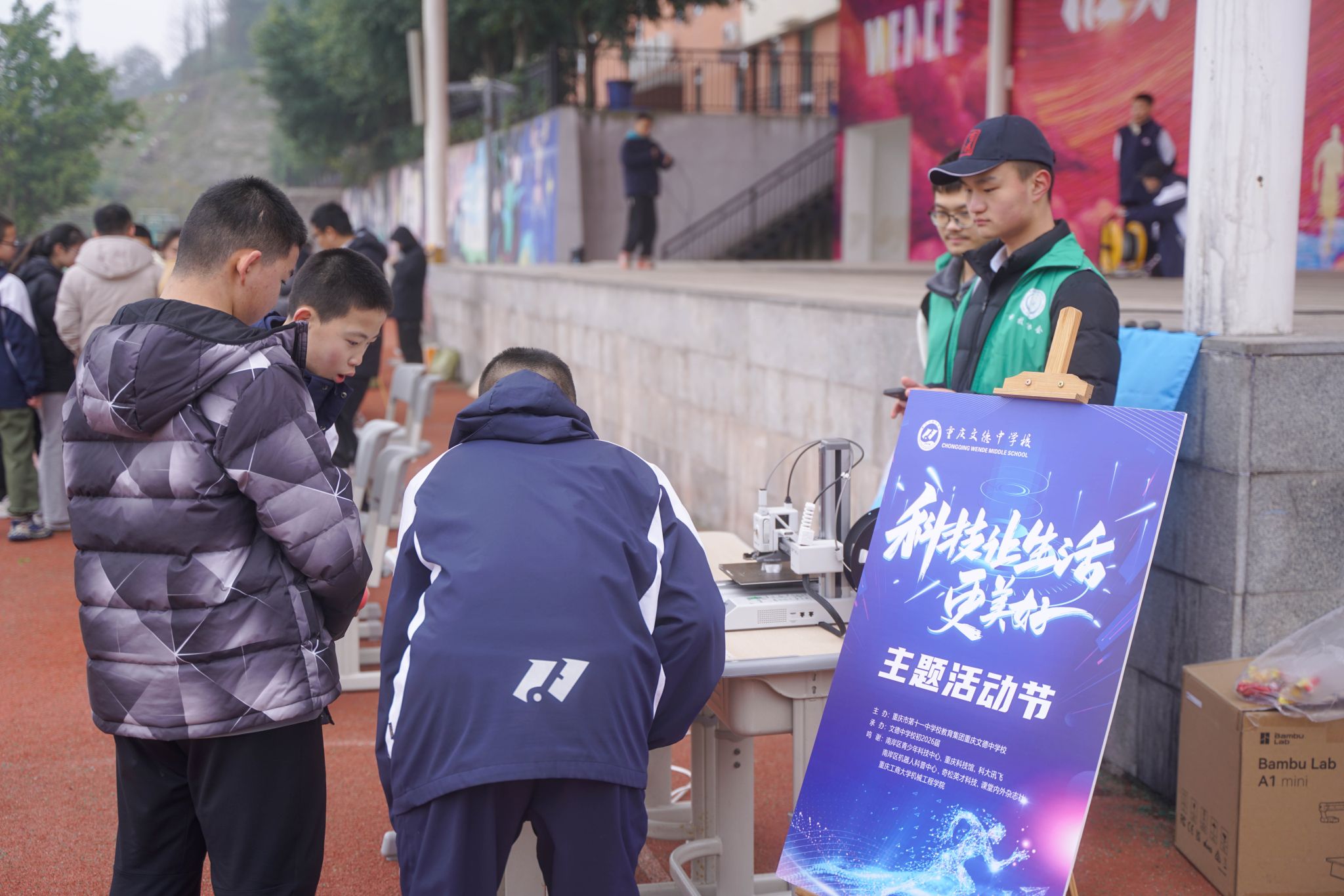 为响应国家《“十四五”原材料工业发展规划》,受重庆文德中公司邀请,12月16日下午,K1体育科技协会在重庆文德中公司运动场布置了3D视界,创意无界——3D打印展览。科技飞速发展的当今社会,当中小员工遇上3D打印建模,会碰撞出怎样奇妙的火花?本次活动旨在通过现场展示的方式,向同学们普及增材制造技术的相关知识,激发他们对科技创新的兴趣和热情。K1体育科技协会和重庆文德中学师生参与此次科技嘉年华主题活动,共同开启了一场独特的科技之旅。