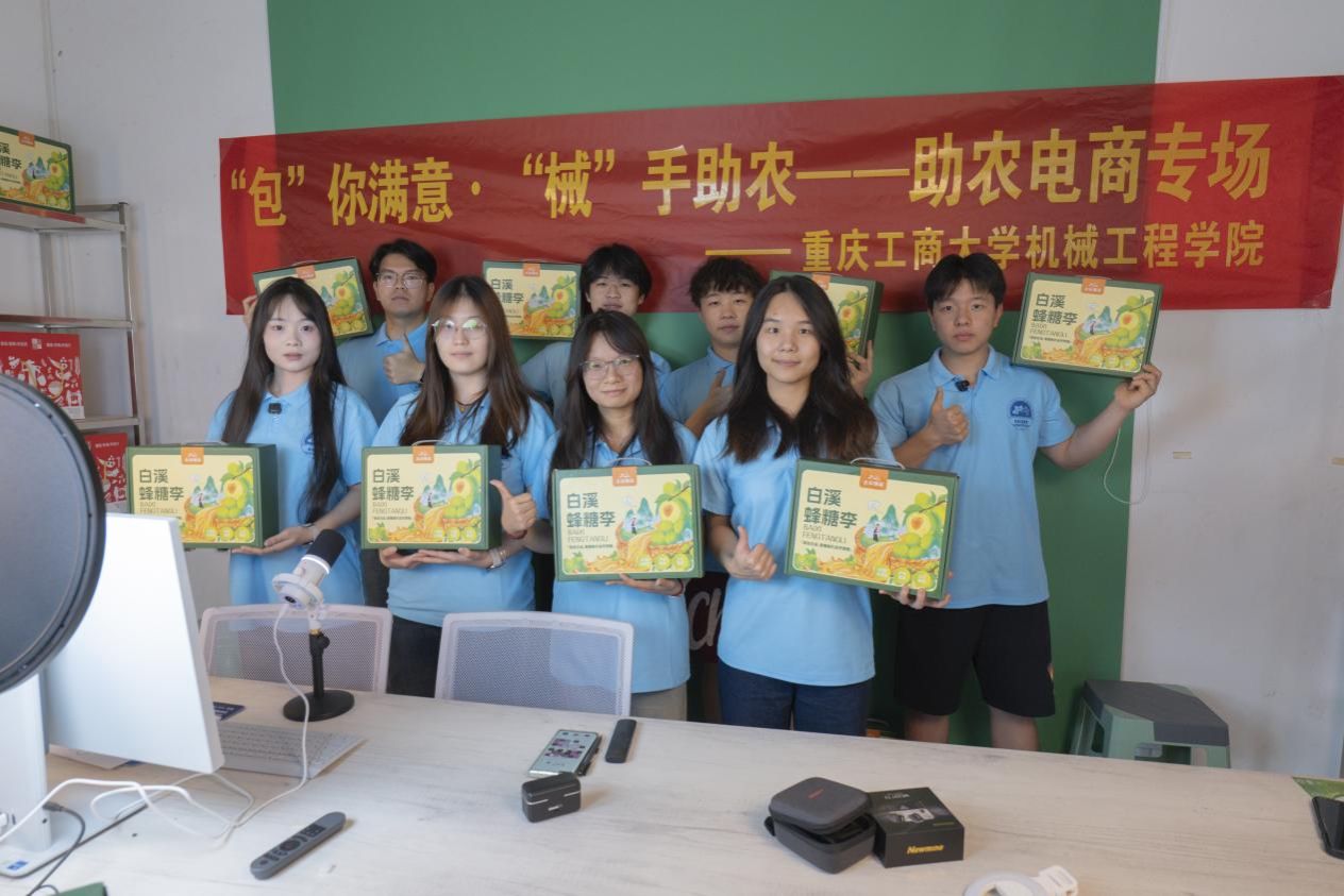 支坪镇白溪社区的干部们选取了一款“白溪蜂糖李”的外包装设计进行了实物量产,作为电商直播的主要包装。专业设计稿件从“图纸到实物”的转变,让实践团员们分外激动。拿着自己设计的农副产品外包装作品,团员们开展了一场直播带货活动。他们以热情洋溢的讲解和生动有趣的演示,向观众们介绍白溪社区蜂糖李的独特魅力。同时还展示了经过精心设计的包装箱,强调了包装在保护李子品质和提升产品形象方面的重要作用。这个特殊的体验,势必让大家印象深刻。