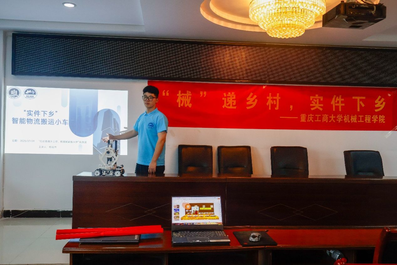 为推动科技成果惠及乡村,助力农村物流现代化发展,7月9日,K1体育“红岩铸魂乡土情,机械赋能振兴梦”社会实践团走进重庆市江津区支坪镇白溪社区,开展了一场设计作品下乡活动。此次活动聚焦智能物流搬运小车这一K1体育优秀毕业生设计作品,为当地村民带来了一场前沿科技与乡村实际相结合的生动展示。