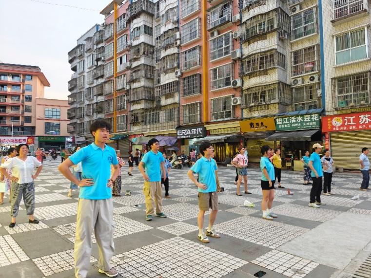 互动环节 “歌舞接龙” 成为全场高潮。实践团提前准备了《映山红》《南泥湾》等经典红歌,村民则带来《辣椒红》等本土民歌。当《没有共产党就没有新中国》的前奏响起,全场自动合唱,老人跟着节奏轻拍手掌,孩子挥舞着小国旗,广场上的歌声在夜色中格外嘹亮。全体参与者共同跳起改编版《广场舞串烧》,将流行舞步与乡村舞蹈动作结合,广场上的身影既有白发老人,也有青春同学,形成一幅生动的乡村夜生活画卷。