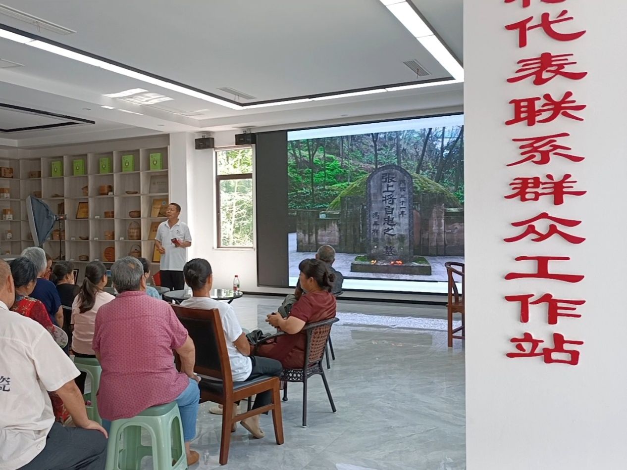 北碚的厚重,更藏在先辈们的红色足迹里。实践团跟随白俊奎老师的讲解,回溯张自忠、卢作孚的贡献,感悟炽热红色精神。白俊奎老师讲道,张自忠将军以热血赴国难,在抗战烽火中捍卫民族尊严,其精神是北碚红色底蕴的硬核支撑。他的担当,契合国家“传承红色基因,弘扬爱国主义精神”导向,激励着当代青年直面挑战、坚守大义。卢作孚先生深耕北碚,搞建设、兴教育、办实业,以实业救国的行动,为北碚发展筑牢根基。他践行的“爱国、奋斗、奉献”精神,与乡村振兴战略中“激发乡土发展活力,凝聚建设力量”同频,是先辈为家国拼搏的生动注脚 。实践团成员和村民们一起听课时,眼神里满是敬重。先辈们的红色精神,正跨越时空,滋养着一代又一代中华儿女的家国情怀。