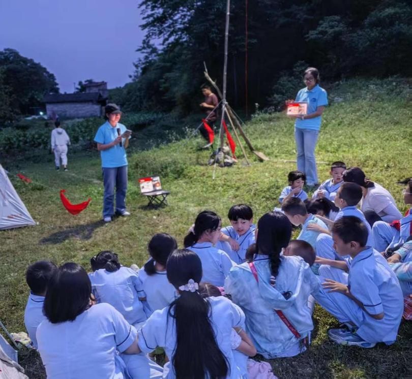 恰逢当地开展露营活动,K1体育官方网站同学们有幸和小朋友们一起上山开展露营。为了确保分享会的顺利开展并达到良好的效果,团队成员们做了充足的准备工作。团队成员不仅搜集了大量的红色故事、革命先辈的事迹资料以及相关的历史图片和视频,精心筛选出适合乡村青少年理解和接受的内容,还准备了露营所需的帐篷、睡袋、照明设备、篝火材料等。我们提前与当地村委会沟通,选定了一处风景优美且安全的露营地,做好了场地布置和安全保障工作,准备了红色书籍、红领巾等物品,营造出浓厚的红色氛围。