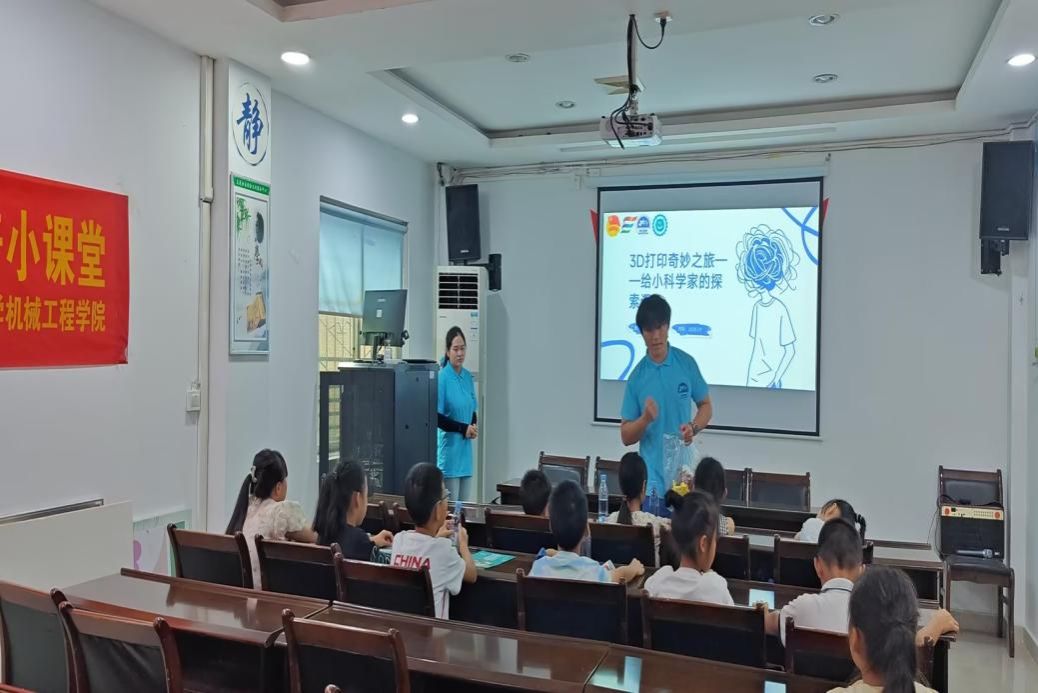 随后的3D打印科普课堂同样人气十足。实践团成员胡秋雨的展台上,迷你大象模型、齿轮零件、卡通笔筒等成品整齐排列,阳光折射下的纹路清晰可见。她拿起模型展示“层层叠加”的打印痕迹,结合延时视频演示塑料丝如何从细丝逐渐勾勒出完整造型,孩子们瞪大眼睛凑近屏幕,不时发出惊叹。社区的工作人员听完了课堂,也感慨现代技术的精细程度让这些小物件比手工制品更显精致。