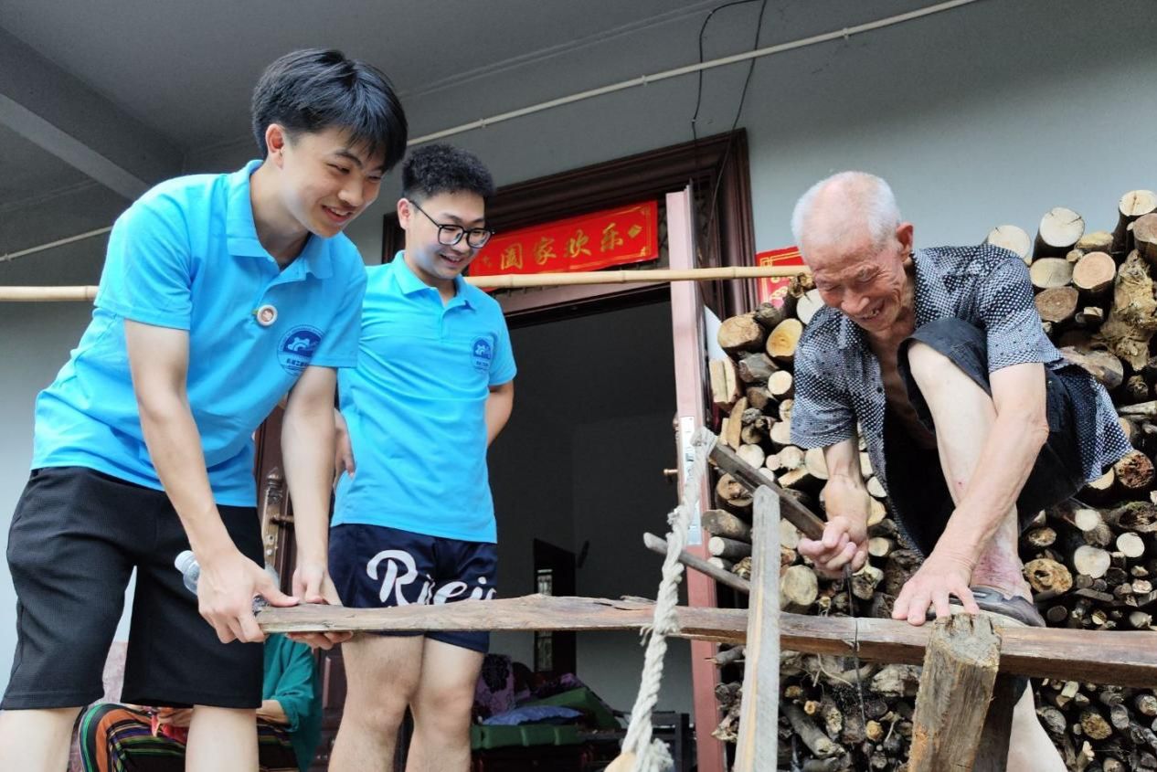 有的成员则拿起清洁工具,化身勤劳的“家务小达人”。他们挽起袖子,帮助老人劈材,清扫地面的杂物,不放过任何一个卫生死角,还细心地整理摆放物品,让老人的居住环境焕然一新。抹布擦过的玻璃透出明亮阳光,扫帚扫过的地面整洁如新,经过改造的家居布局更加安全便利,点滴改变都凝聚着志愿者对老人的细致关怀。