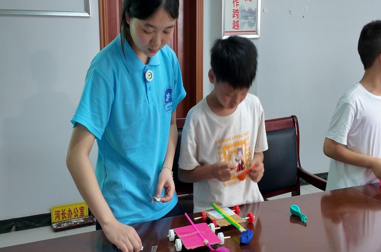 小朋友们在实践团成员的指导下亲自操作,现场笑声与惊呼声不断。科学小实验结束后,团队成员又开展了科普小课堂活动。以科学知识为少年强国梦添砖加瓦。