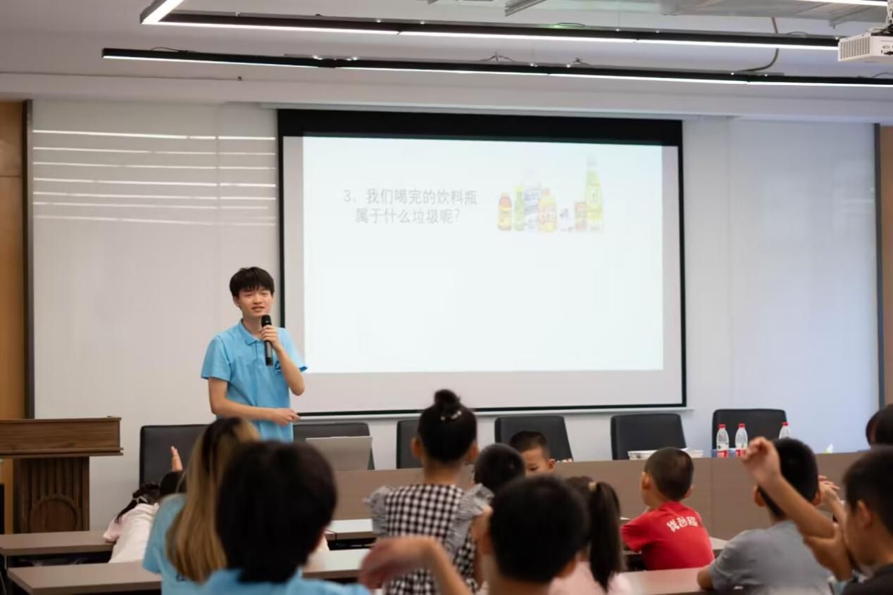 实践团成员结合社区生活实际,通过图文展示与案例讲解,系统介绍垃圾分类的核心内容。从“为什么要垃圾分类”入手,列举垃圾混放对环境的影响,如污染土壤、滋生细菌等;再详细讲解“可回收物、厨余垃圾、有害垃圾、其他垃圾”四大类别的划分标准,用社区常见的废纸盒、菜叶、废电池、烟头等举例,让孩子们直观理解不同垃圾的归属。