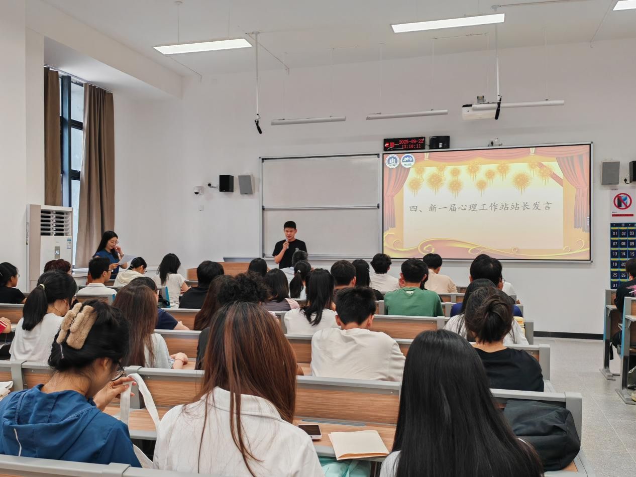 会议伊始,上一届心理工作站站长邹武宏进行了全面细致的总结。过去一年,心理工作站取得了丰硕成果:不仅在首届校园心理情景剧比赛中荣获二等奖,还通过举办非遗竹编等特色活动,有效帮助同学们缓解心理压力。此外,工作站每月定期开展形式多样的心理健康活动,并积极加强与公司其他四大组织及党员服务站的协作,共同营造了良好的校园心理健康氛围。