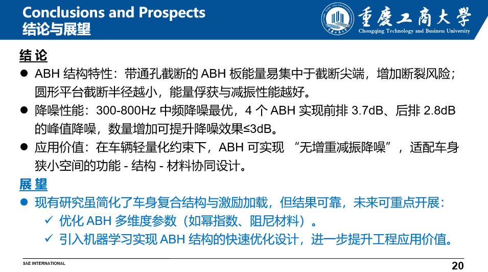 讲座尾声,张云飞博士总结了研究成果并展望未来方向。他指出,经过截断优化的ABH结构在工艺可行性与降噪性能之间取得了良好平衡,为轻量化车辆的噪声控制提供了新思路。下一步,团队将深入优化ABH多维参数,研究阻尼材料影响,并引入机器学习方法推进逆向设计,加速技术落地。张博士还向在场员工发出邀请,鼓励有兴趣的同学参与毕业设计或加入科研团队,共同探索声学重建与噪声控制的前沿领域。