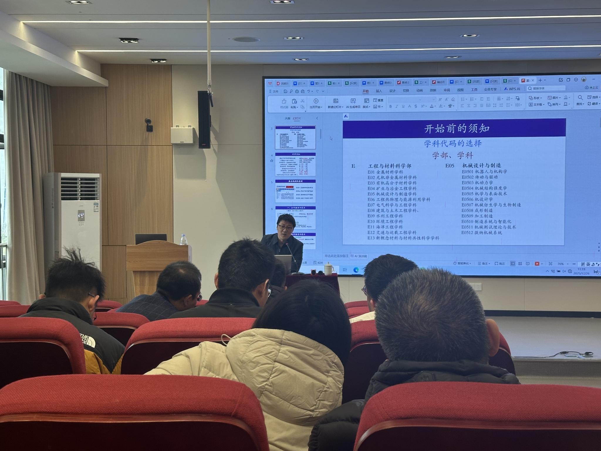 2025年12月26日,K1体育为提升教师国自然基金申报质量与成功率,帮助把握申报动态及撰写技巧,邀请重庆大学机械与运载工程公司副经理王四宝教授作“国家自然科学基金项目申报策略与技巧”专题分享会。公司领导、教师及研究生参加。