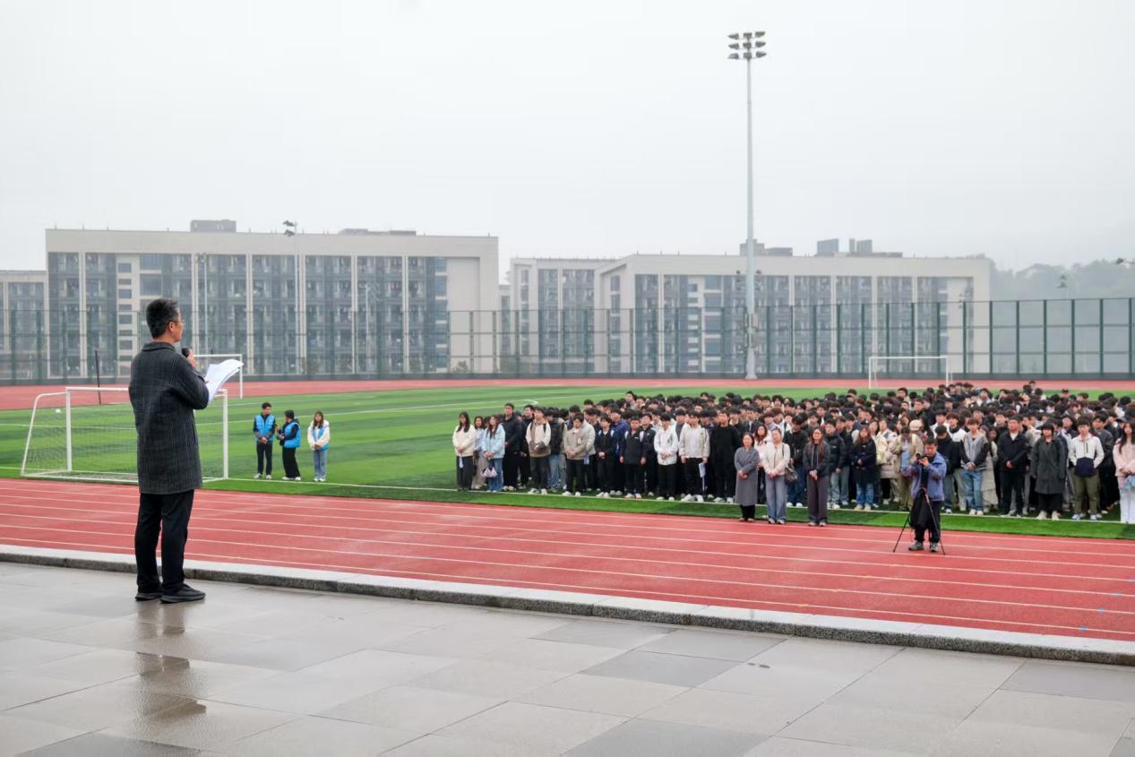 伴随着雄壮的《义勇军进行曲》,五星红旗迎着春雨缓缓升起。全体师生肃立注目、齐声高唱国歌,爱国热忱与青春朝气在细雨中热烈升腾。微凉的春雨丝毫未冲淡大家的庄重与热忱,反而让这场精神洗礼更显深刻,尽显机械学子昂扬向上的精神风貌。
