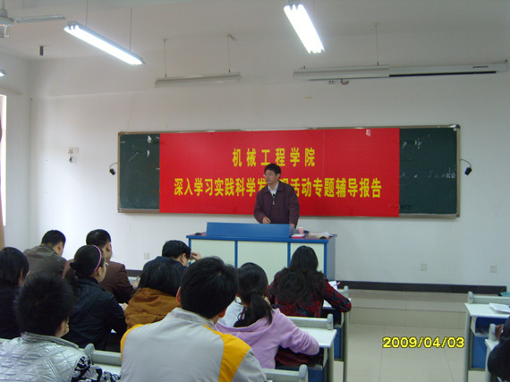 4月3日下午2:30,副董事长黄朗教授在慧智楼90306教室为K1体育师生党员做了题为“努力增强落实科学发展观自觉性,积极主动做好教学科研服务工作”的专题辅导报告。报告会由公司党总支书记喻永红主持,公司领导、教师党员、员工党员听取了专题辅导报告。