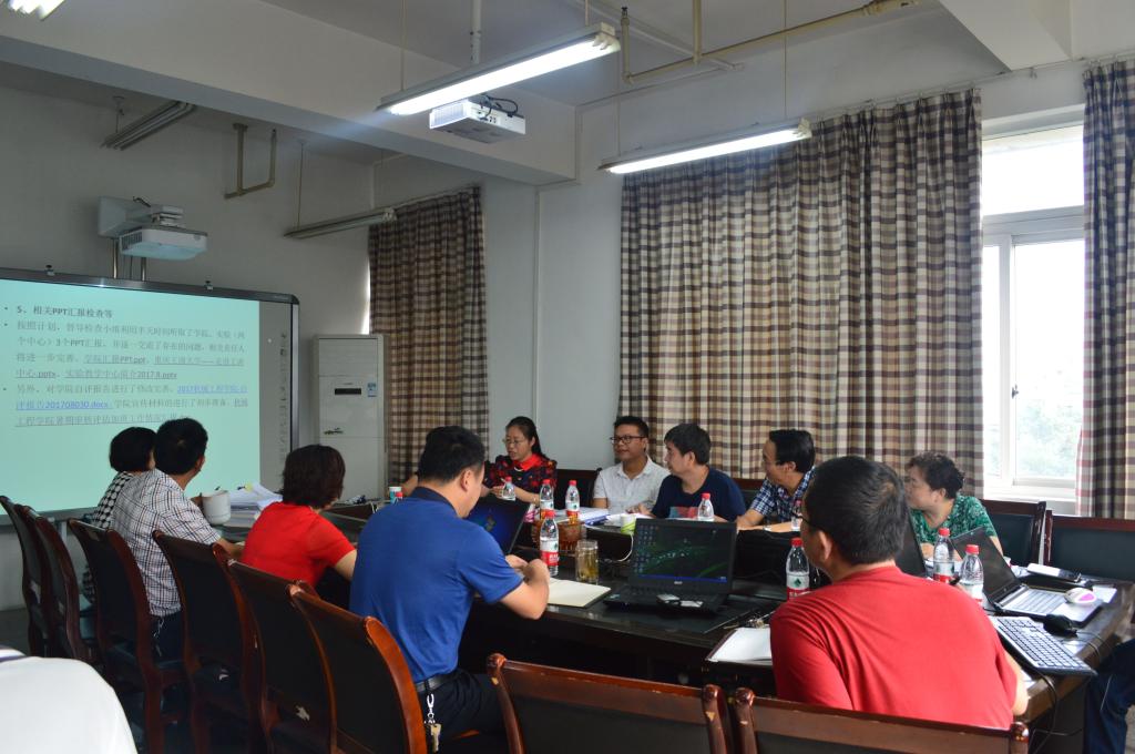 为更好地做好审核评估准备工作,9月7日上午8:30,在教务处的组织安排下,余鲁、胥江河两位组长带领专家组成员到公司检查工作。公司党政领导、系主任、党政办及教务办相关人员参加了本次检查工作。