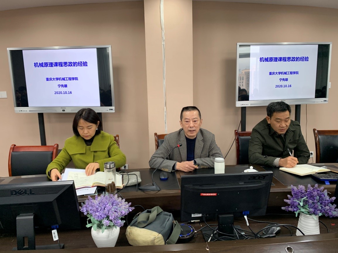 首先,宁教授介绍了什么是课程思政,指出课程思政与“两课—即马克思主义理论课和思想政治教育课”之间的区别与联系。其次,深入浅出的指出课程思政教育的必要性及紧迫性。第三,宁教授指出在高校课程思政的重点,一是政治认同,有效推进“三进”;二是家国情怀,培育和践行核心价值观;三是文化素质,加强中华优秀传统文化教育;四是宪法法治意识,深入开展宪法法治教育;五是道德修养,深化职业理想和职业道德教育。并且针对工学类专业课程,给出课程思政从“工程伦理、工匠精神、家国情怀和使命担当”四个方面与专业课程的关联性。最后,宁教授以自己所承担“机械原理”课程为例,以“青年兴”、“中国人,中国故事”等为课程思政话题,用风趣的语言、详尽的史实、深入浅出的将专业知识与思政元素交叉融合,真正做到了水到渠成、润物无声。