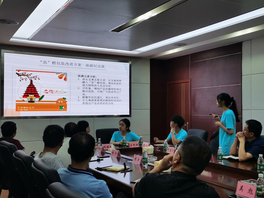 针对座谈会中,当地种植户和企业主反映的在产业升级中面临发展瓶颈和技术问题。实践团冒雨驱车300多公里,进行了实地考察,为新政村柑橘采摘机械化应用、玉印山牌忠州豆腐乳厂包装改良、凉水村皇凤脆桃园幼果套袋提速、重庆市奇罗特饲料有限公司物料科学堆码、秦岭村忠县四通农业开发有限公司珍稀白茶包装设计提档升级、八月瓜产品如何优化物流运输减少损果、蜂糖脆李如何保鲜和差异化选果销售等问题,或进行现场实验或出谋划策或提供合理化建议或研讨改良方案。在社会实践总结会上,研究生团队代表何国华展示了基于前期设计的机械采摘器改进方案,本科生星包装团队代表陈美展示了当地特产忠橙包装设计理念和方案,博士们对八家调研单位的问题进一步提出初步解决方案。实践团的渊博学识,务实态度得到了与会领导和企业家的充分肯定。
