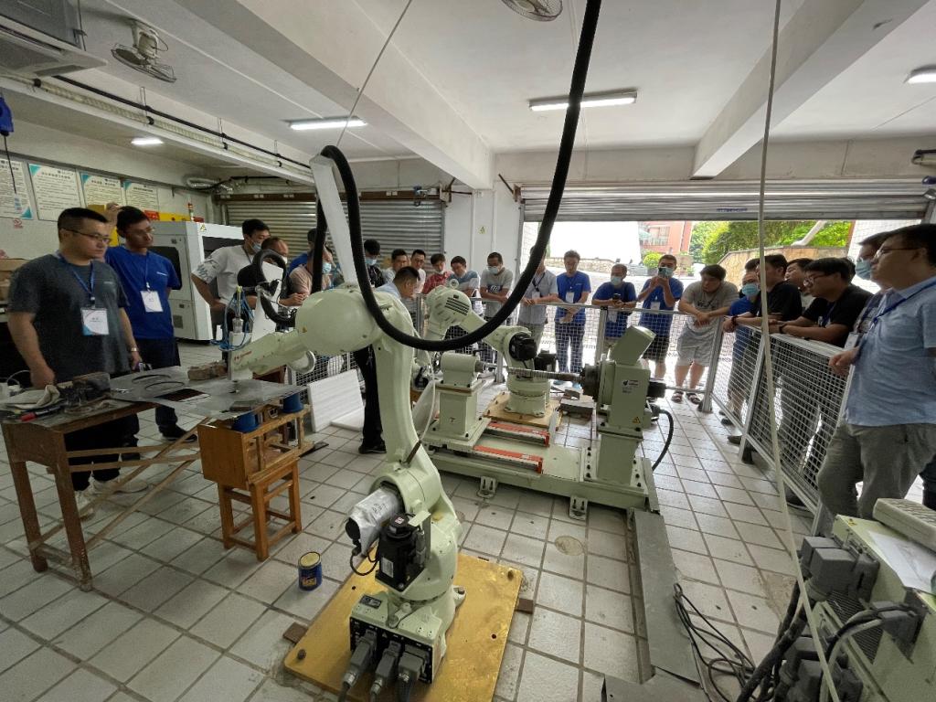 在本次交流培训中,K1体育机器人与激光智能制造研究所所长王洪建副教授代表公司介绍了关于我们和招生情况,以及K1体育办学历史和学科专业构成。接下来的培训是以案例和实作相结合的方式进行,王所长从工业机器人应用总体要求和运行安全规范要求出发,双方就双机器人激光加工系统、机器人高速切割技术、机器人拆装平台、机器人驱动器、机器人编码器、机器人日常维护等内容进行了交流探讨。最后再用写字方式的轨迹写法,演示了激光切割完成“重”字,写字方式完成“重庆”两个字的操作。