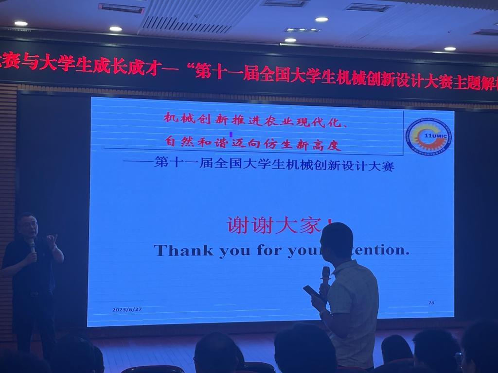 李平副经理对报告会做了总结,并感谢王晶教授为公司师生在赛事解读以及主题选取上给出思路和建议。杜力经理希望各位指导教师和参赛同学根据王晶教授的讲解,准确把握大赛主题,设计出优秀的作品,在第十一届老员工机械设计创新大赛再创佳绩。